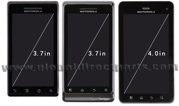 The successor to the famous Motorola Droid also known as the Milestone, seems to be ready to launch. In a leaked document from cellphone parts manufacturer Global Direct Parts, we can see that the Motorola Droid 3 will now have a 4 inch touch screen.